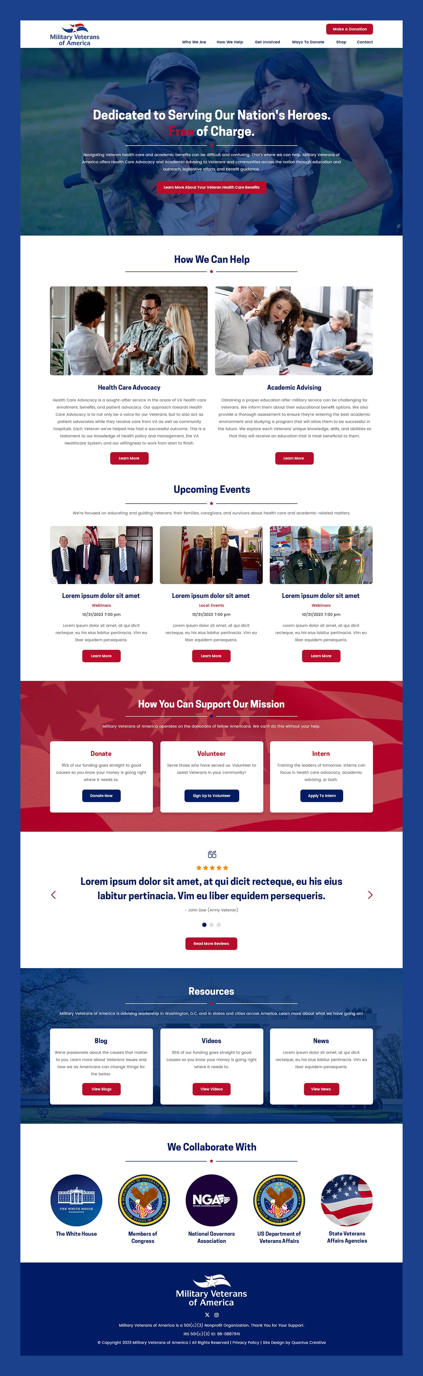 I collaborated with Quantus Creative to provide the following services for this Military Web Design project: